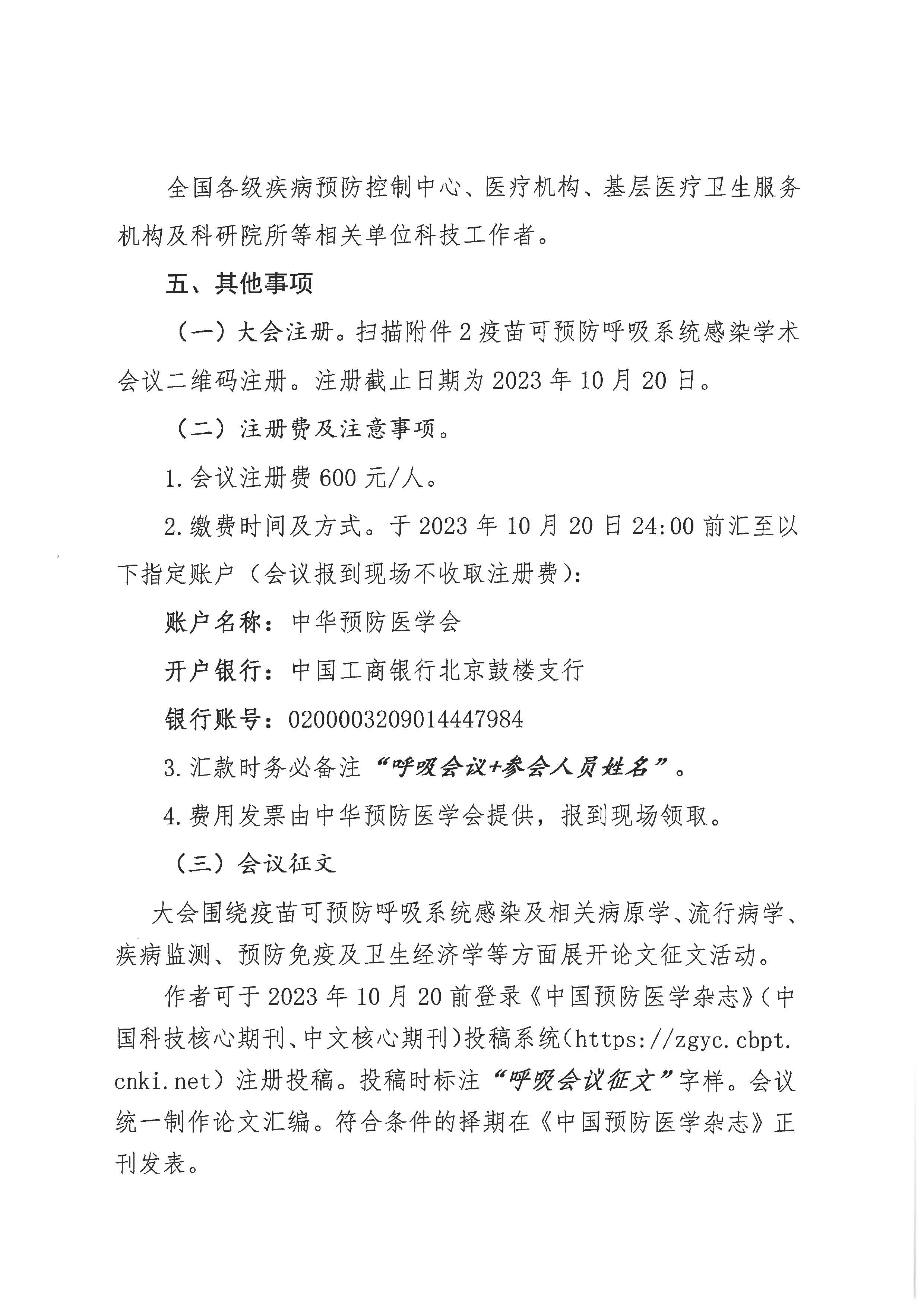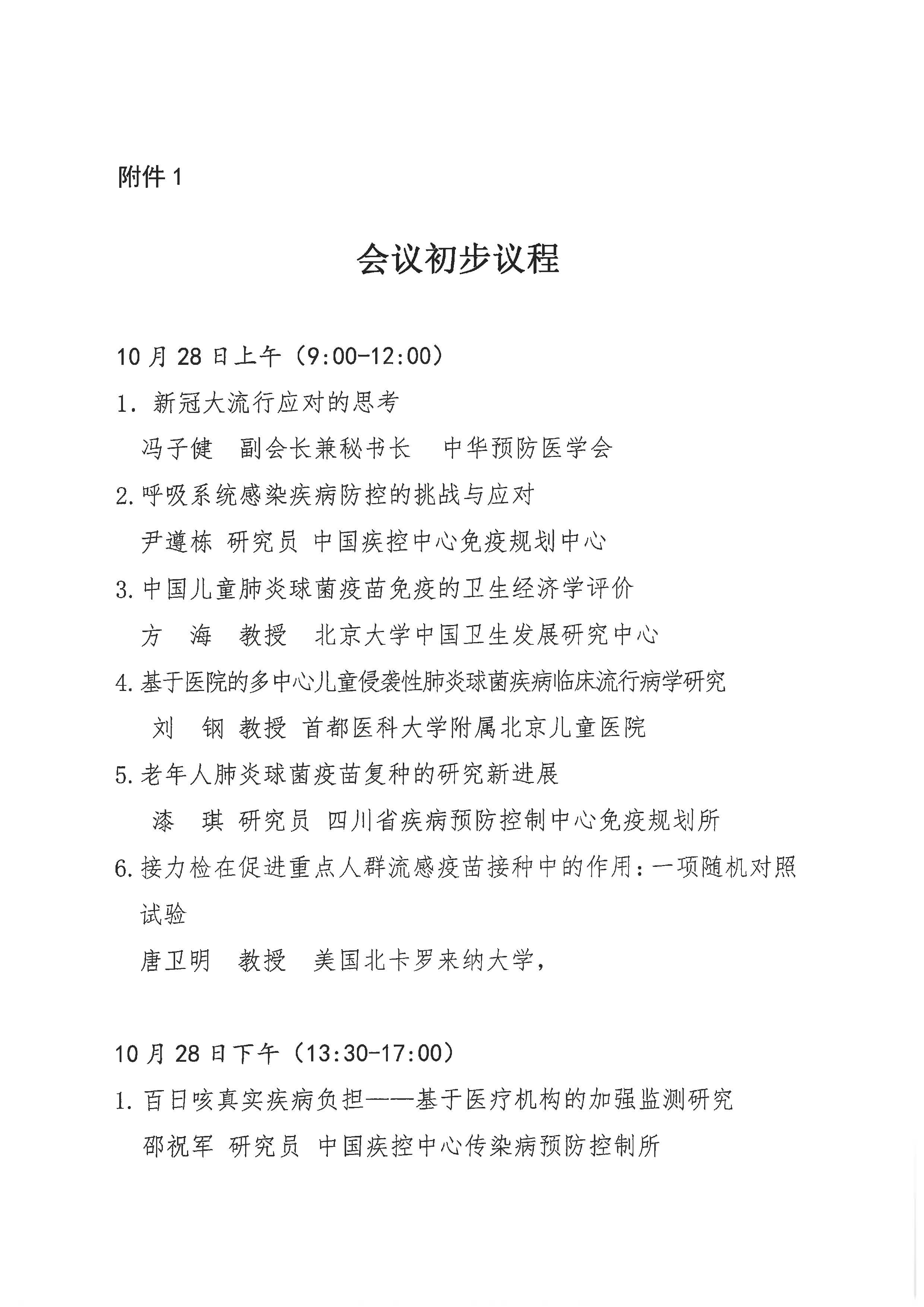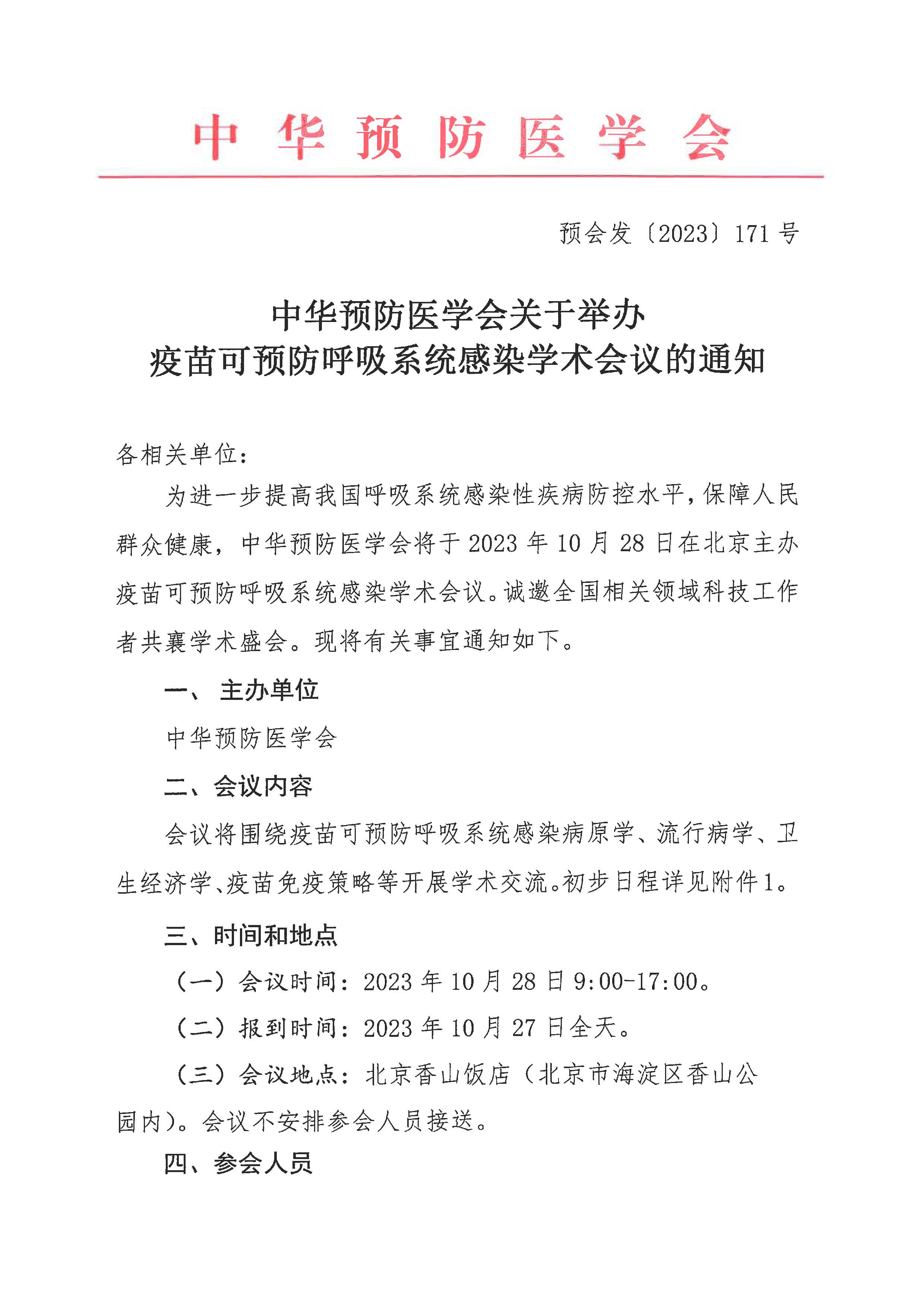 中华预防医学会关于举办疫苗可预防呼吸系统感染学术会议的通知